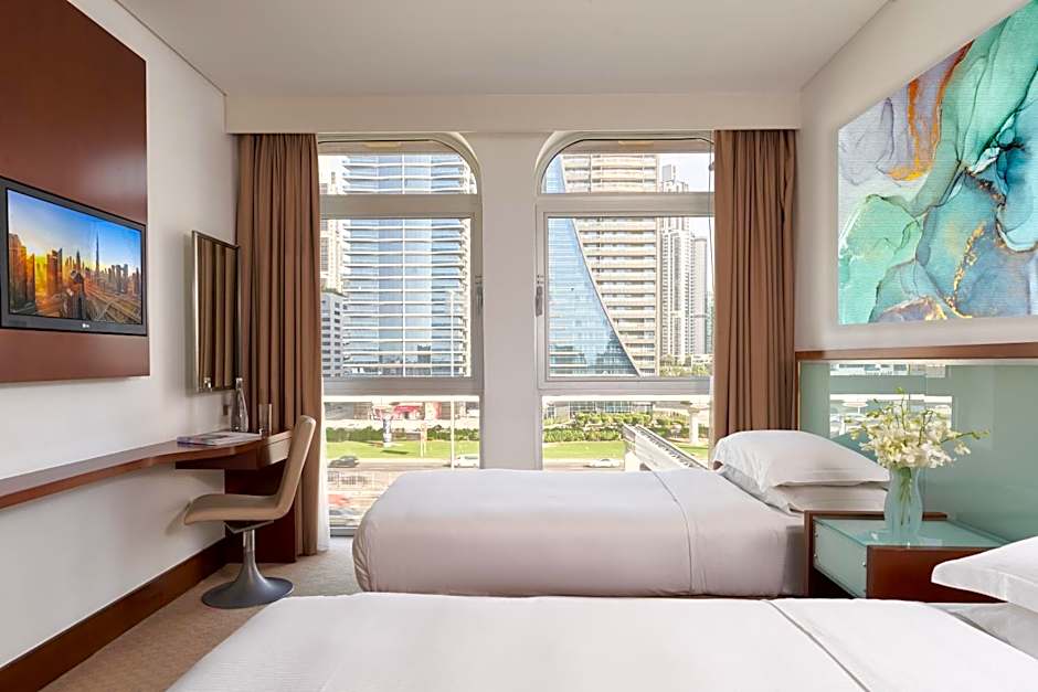 Suites with panoramic views of Sheikh Zayed Road and the Dubai skyline are subject to availability.